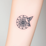 Tetování zvíře kolibřík a květ života, symbolizující životní rovnováhu na ruku