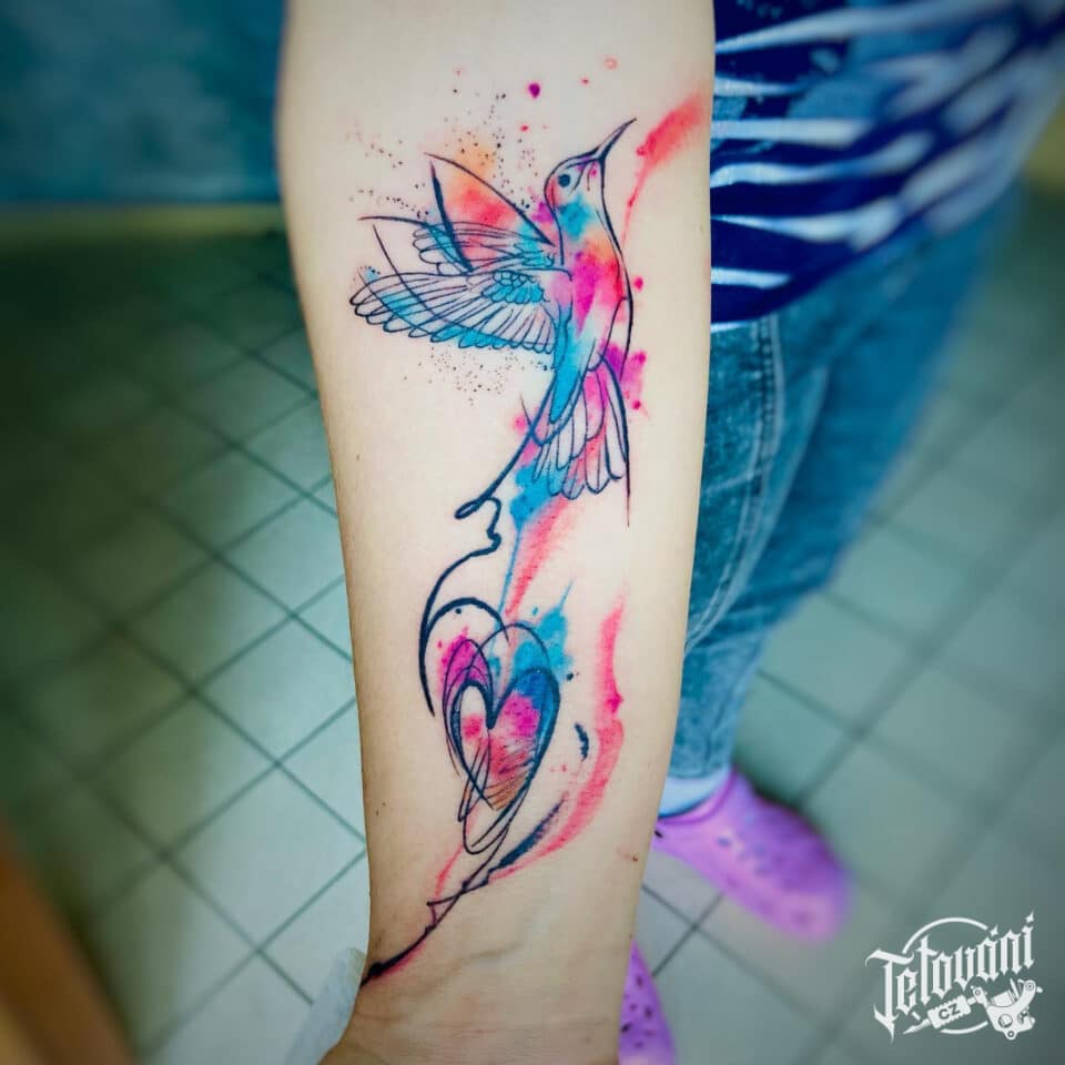 Tetování zvíře kolibřík na předloktí