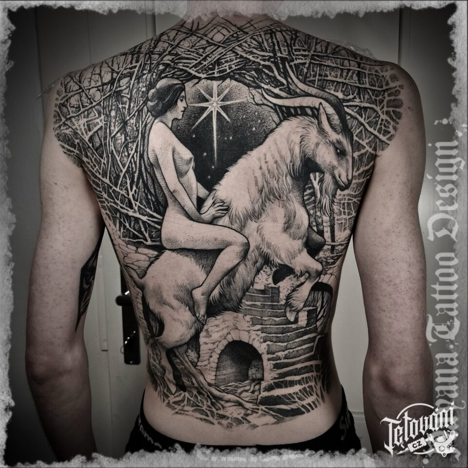 Tetování zvíře koza, žena na záda