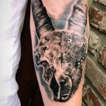Tetování zvíře kozoroh a lebka na ruku