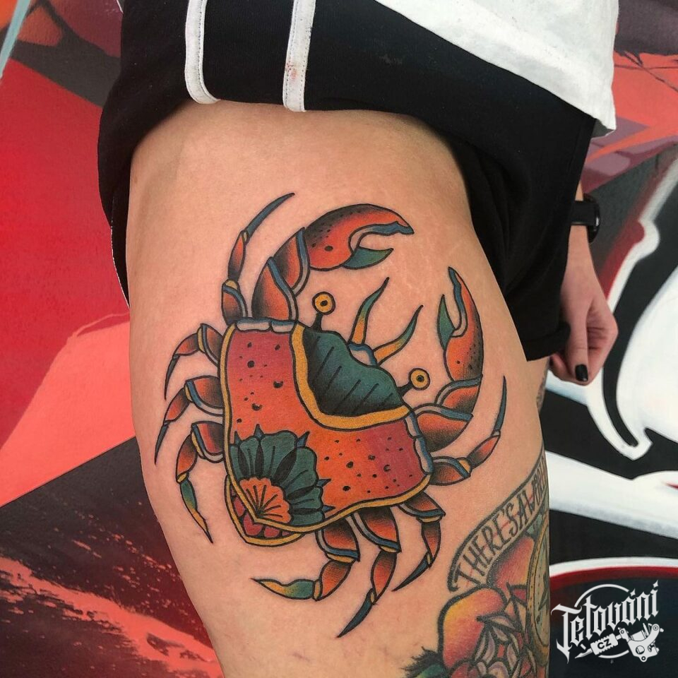 Tetování zvíře, krab na boku stehna