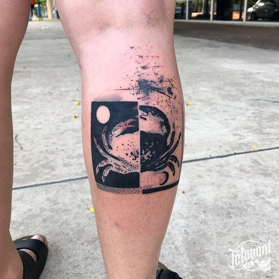 Tetování zvíře, krab na lýtku