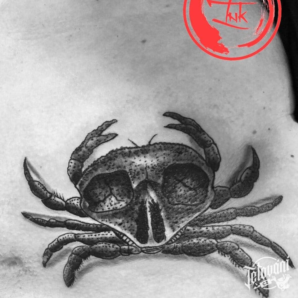 Tetování zvíře, krab s lebkou na boku