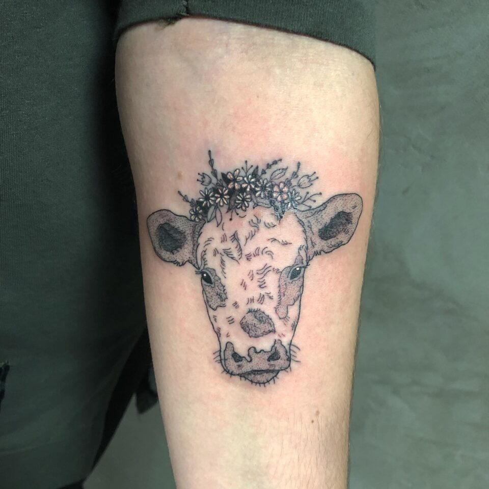 Tetování zvíře, kráva na předloktí