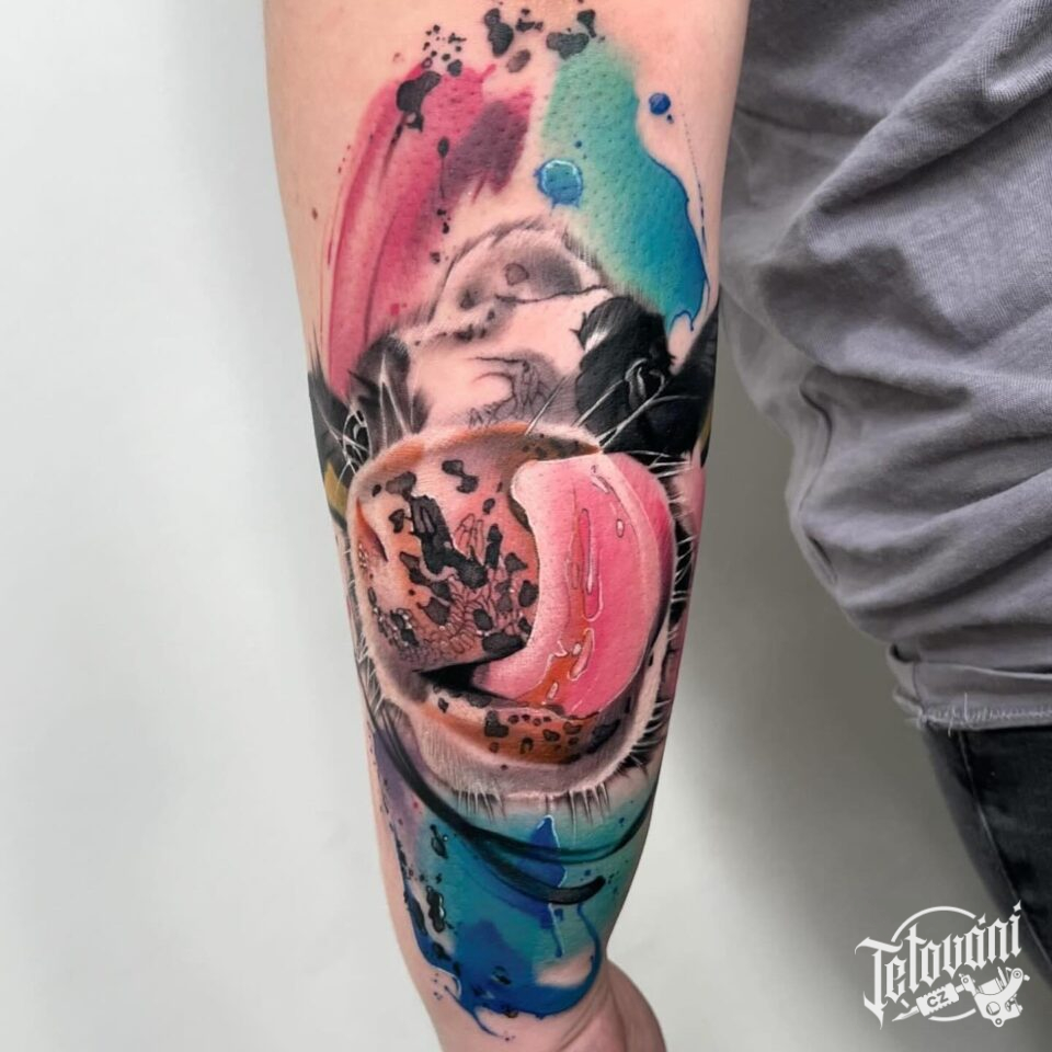 Tetování zvíře, kráva na předloktí