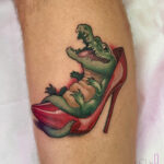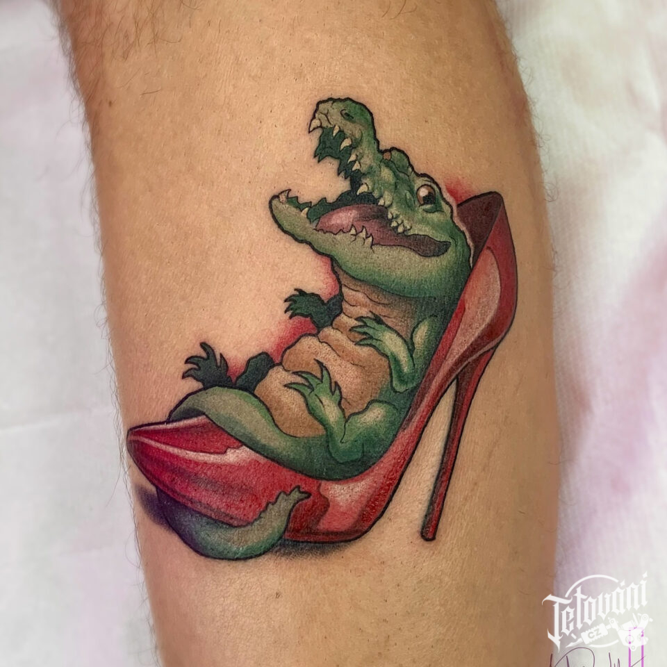 Tetování zvíře, krokodýl na lýtku