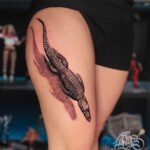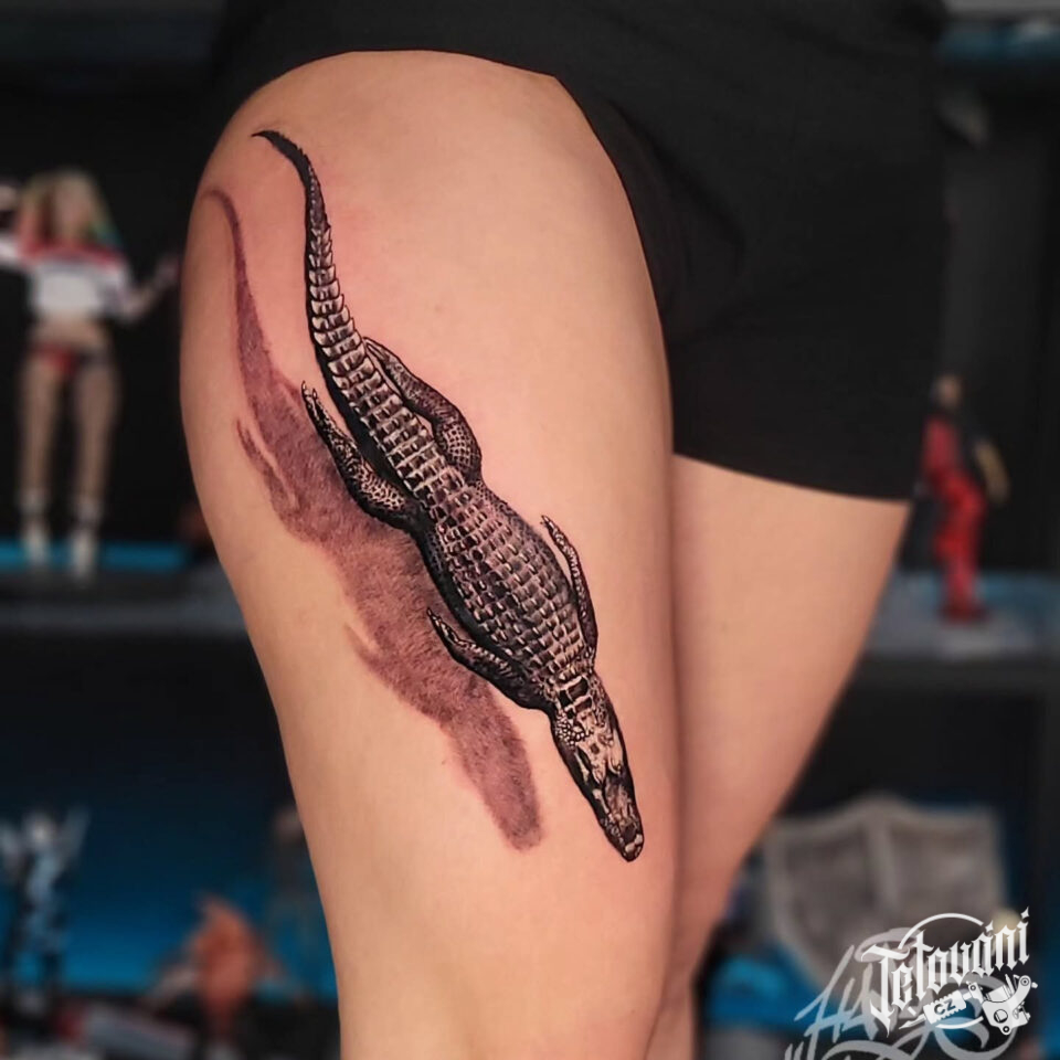 Tetování zvíře, krokodýl na stehně