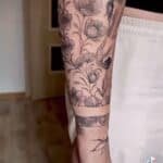 Tetování zvíře, kůň, květinový náramek na předloktí