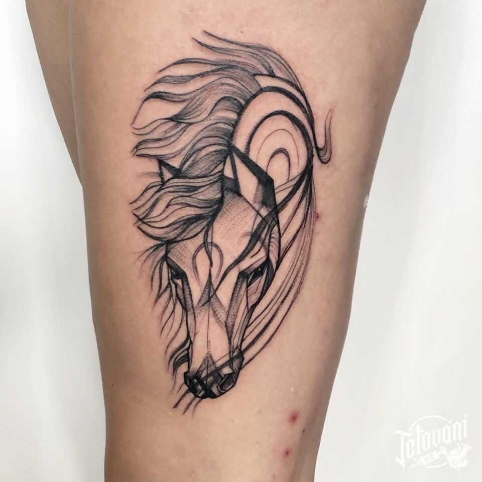 Tetování zvíře kůň na bok stehna