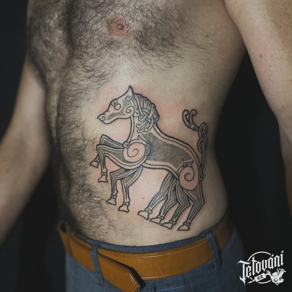 Tetování zvíře, kůň na boku