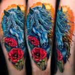 Tetování zvíře, kůň na lýtku