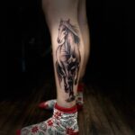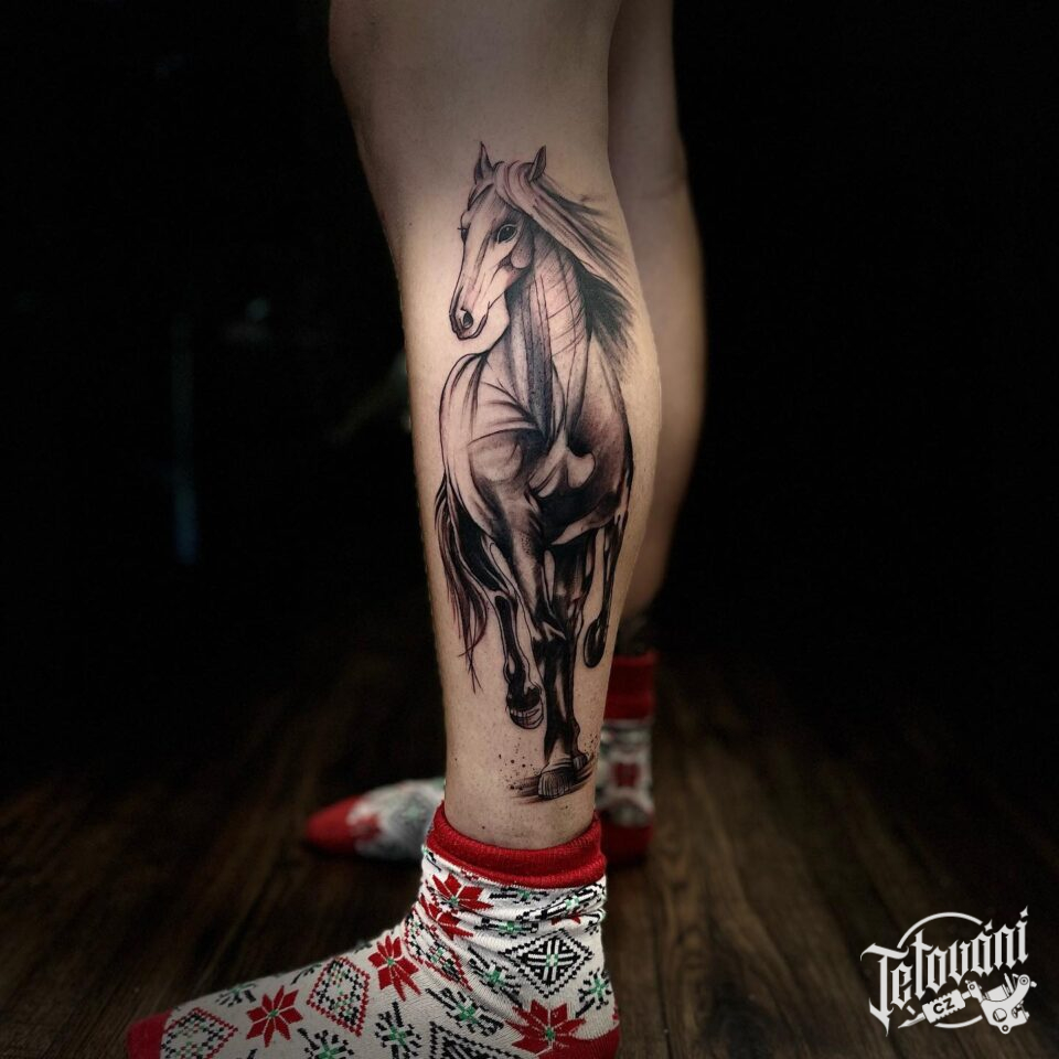 Tetování zvíře, kůň na lýtku