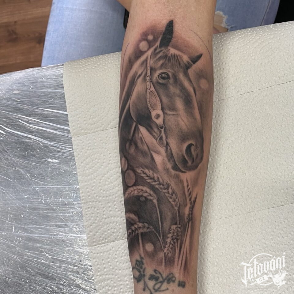Tetování zvíře, kůň na předloktí
