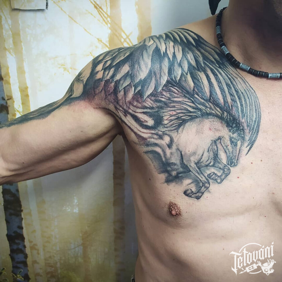 Tetování zvíře kůň na prso