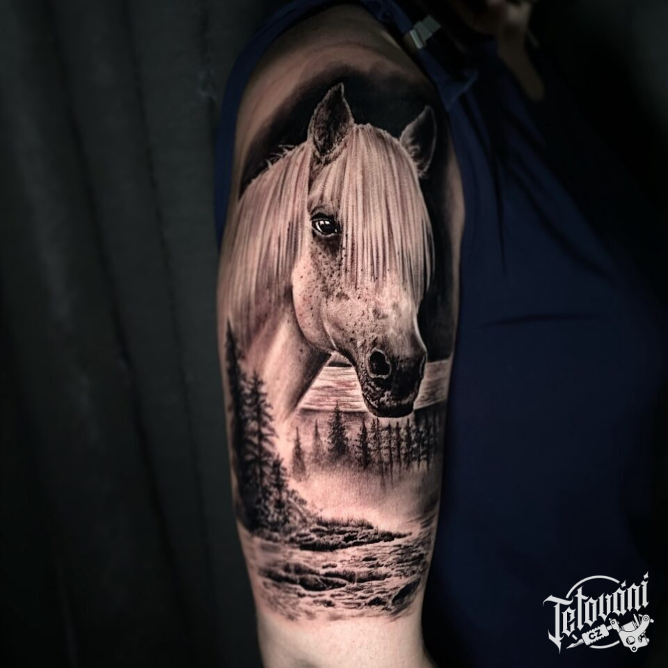 Tetování zvíře kůň na rameno