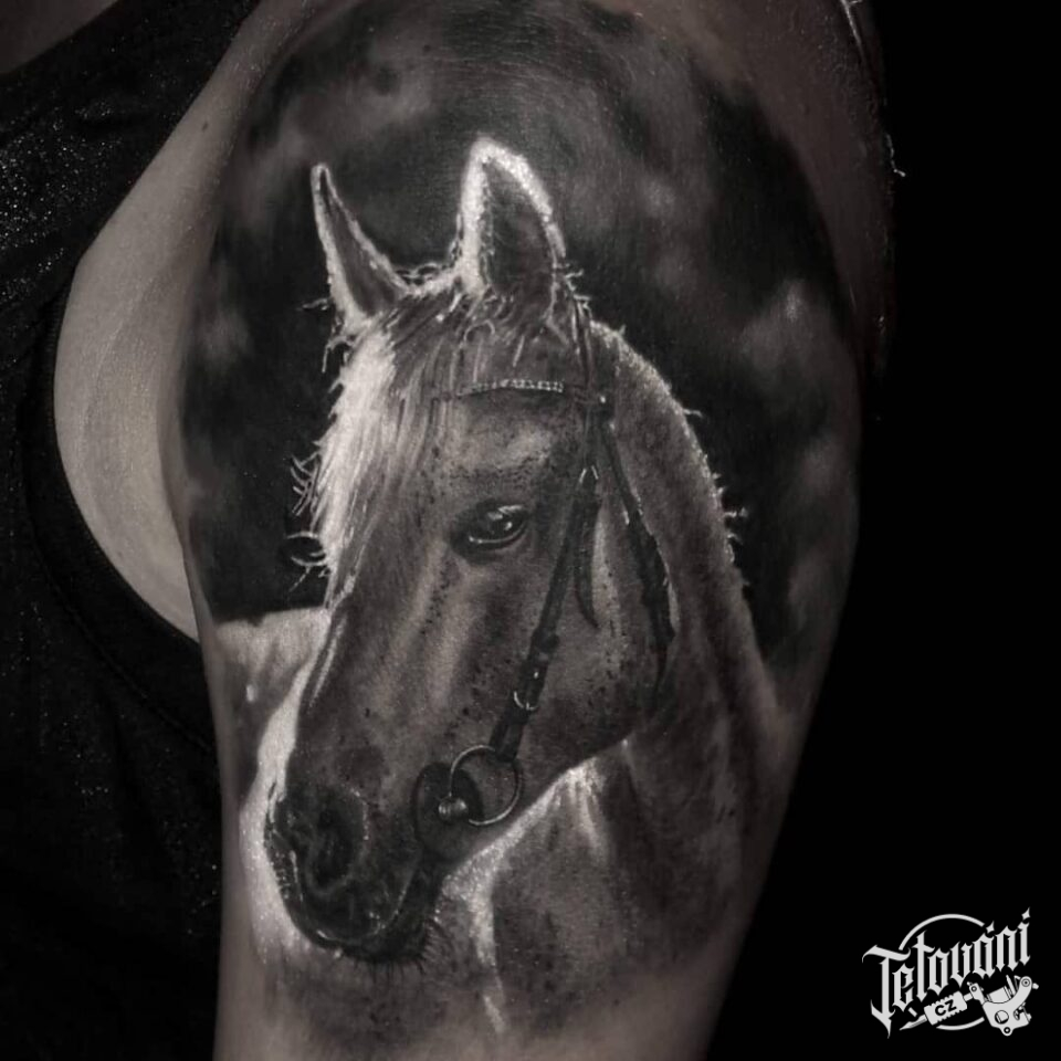 Tetování zvíře kůň na rameno