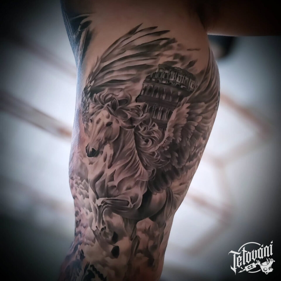 Tetování zvíře, kůň Pegas na paži