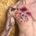 Tetování zvíře, květiny, včela na hrudi