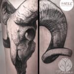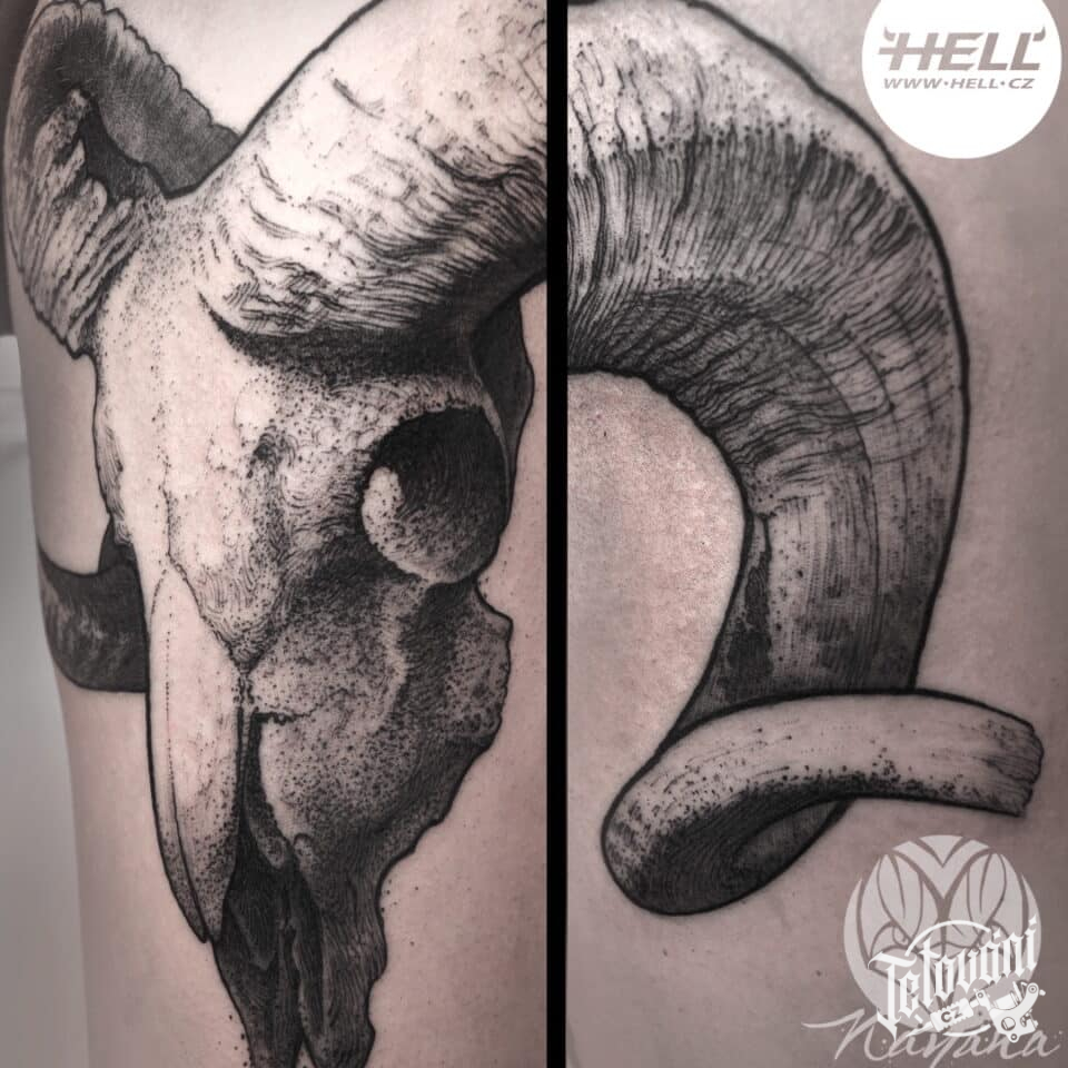 Tetování zvíře lebka berana na stehno