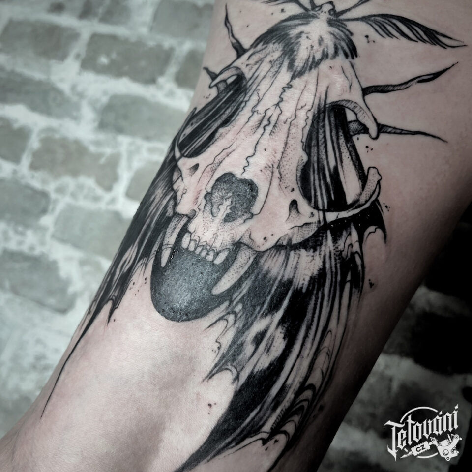 Tetování zvíře, lebka s můrou na ruce