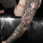 Tetování zvíře, lev a portrét, rukáv
