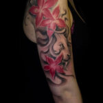 Tetování zvíře lev, květiny na rameno