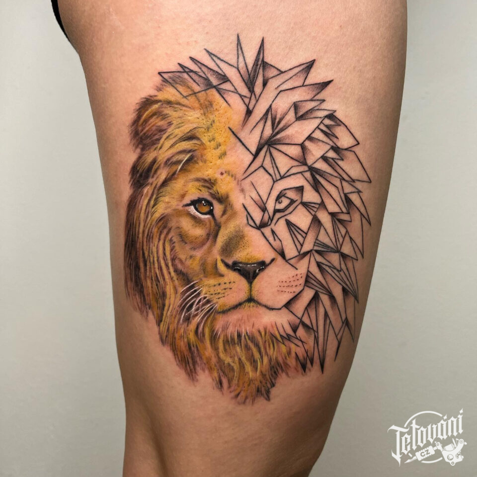 Tetování zvíře, lev, lev znamení zvěrokruhu na stehno