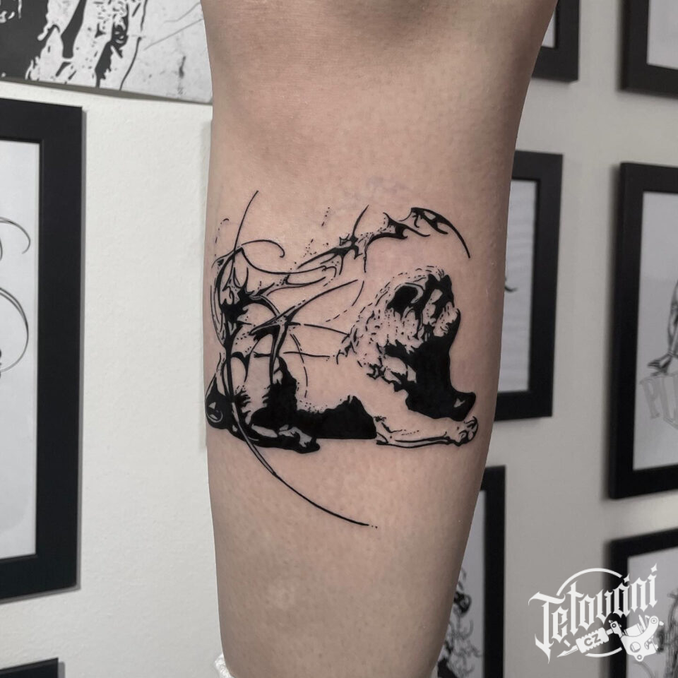 Tetování zvíře lev na holeň