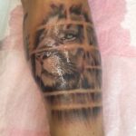 Tetování zvíře, lev na lýtku