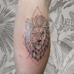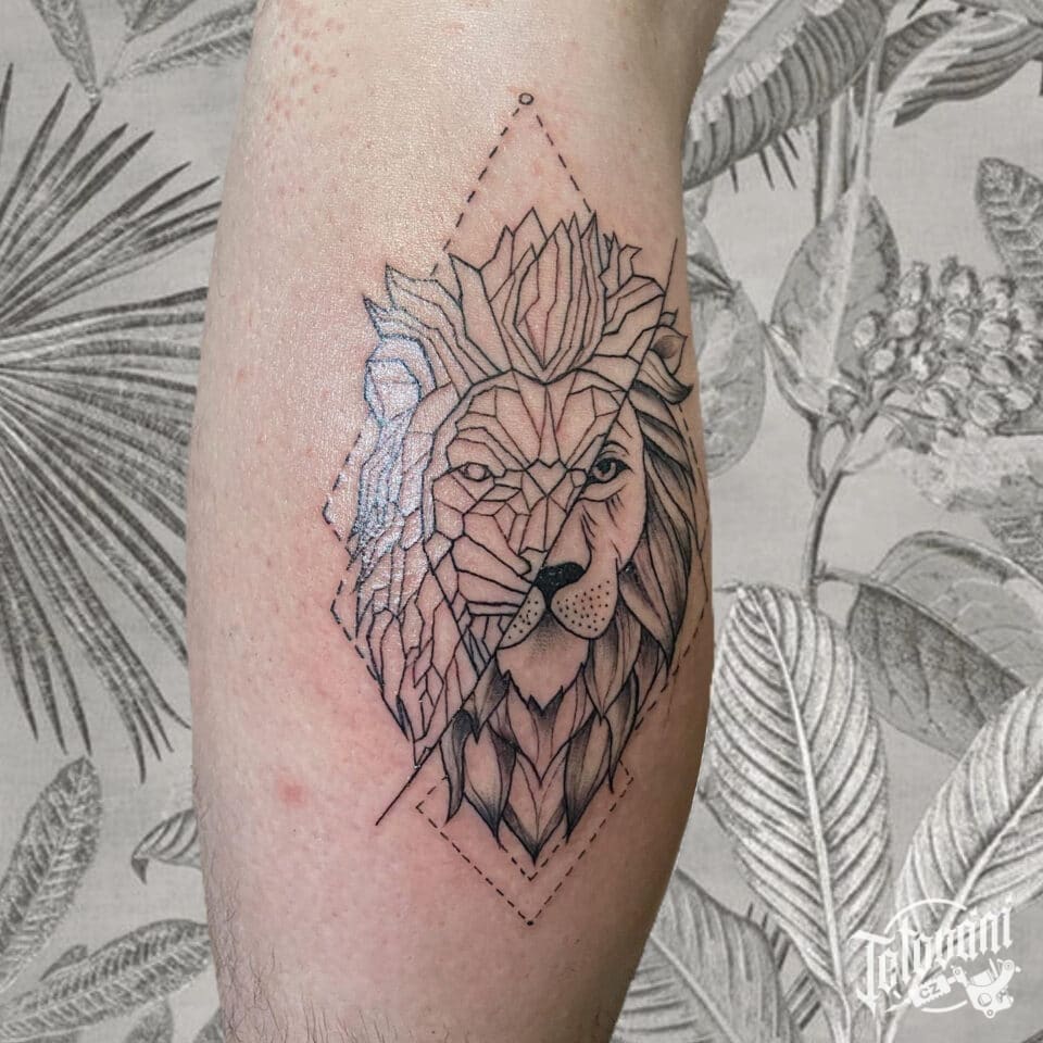 Tetování zvíře, lev znamení zvěrokruhu na lýtku