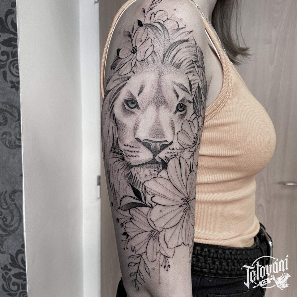 Tetování zvíře, lev na paži