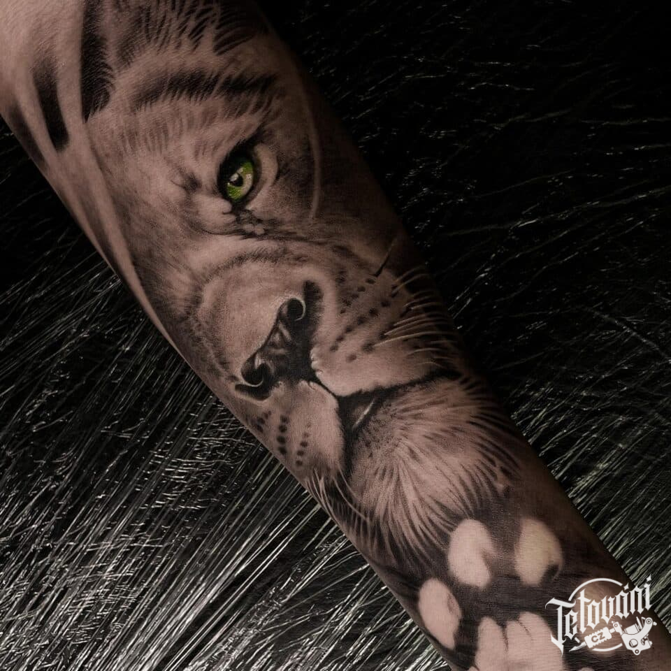 Tetování zvíře, lev na předloktí