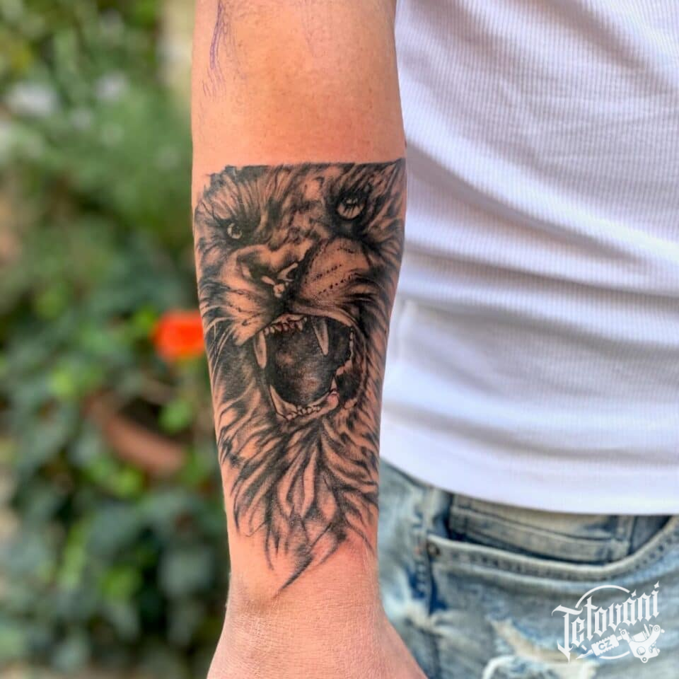 Tetování zvíře lev na předloktí