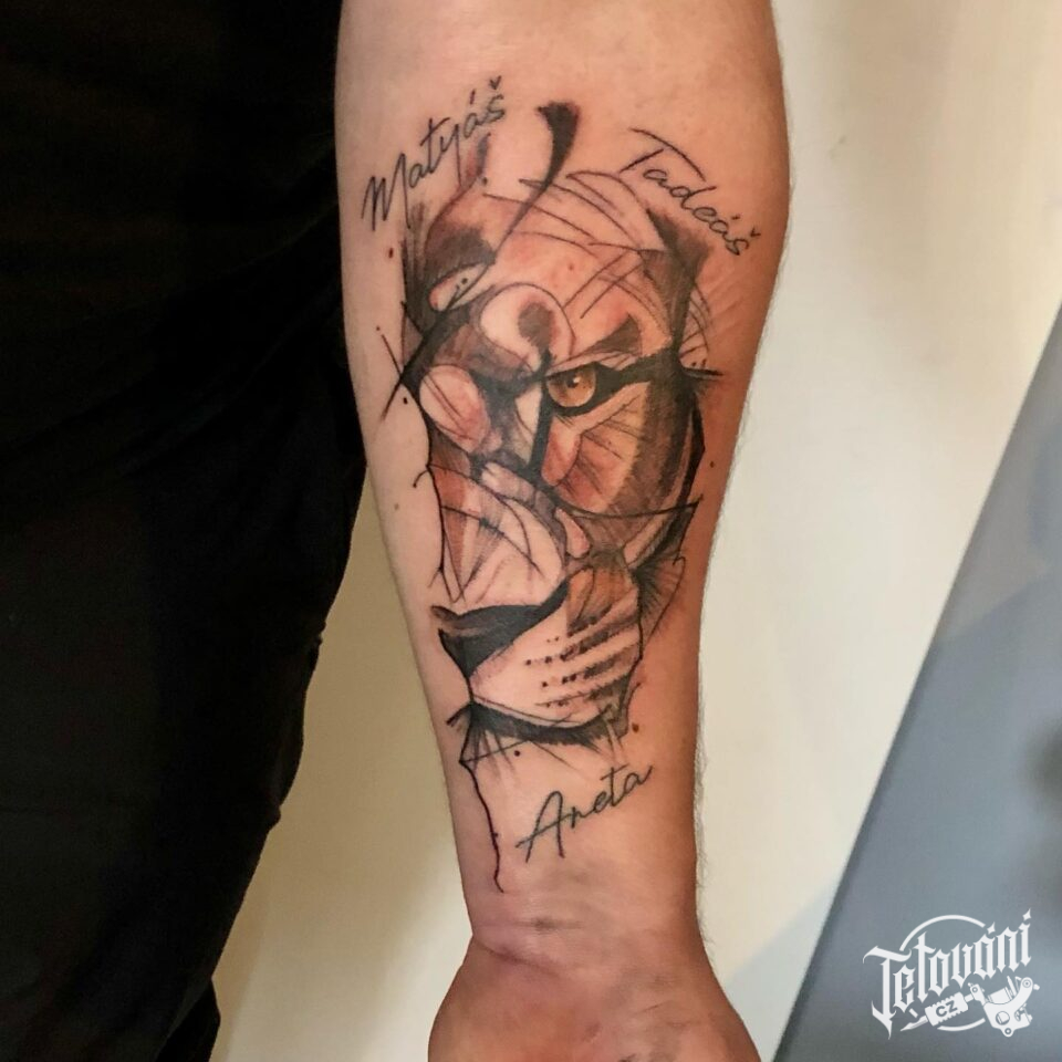 Tetování zvíře lev na předloktí