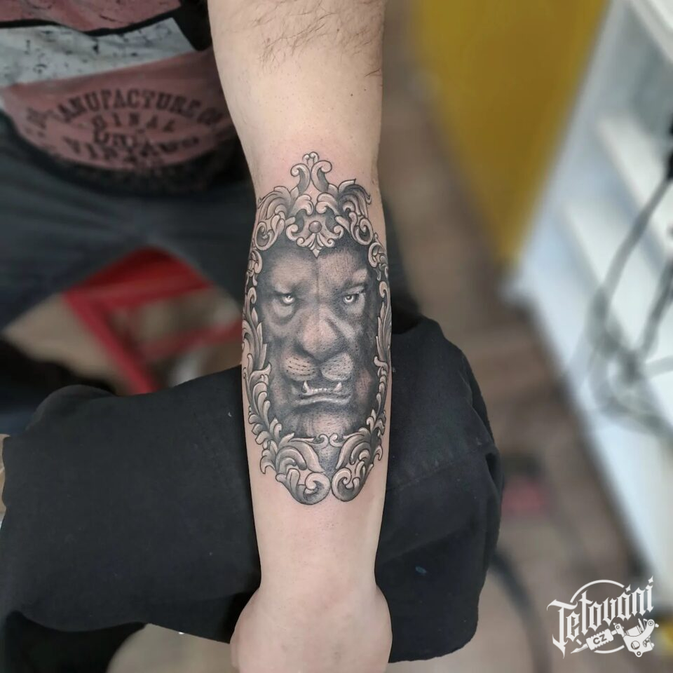 Tetování zvíře lev na předloktí
