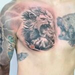 Tetování zvíře lev na prso