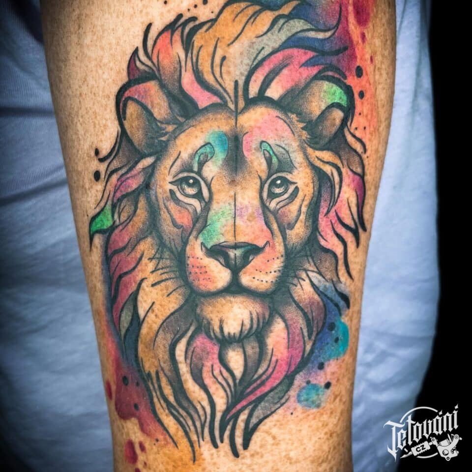 Tetování zvíře lev na rameno