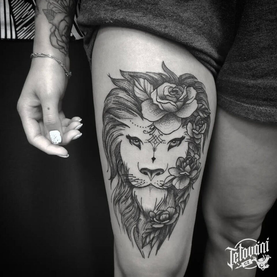 Tetování zvíře, lev na stehně
