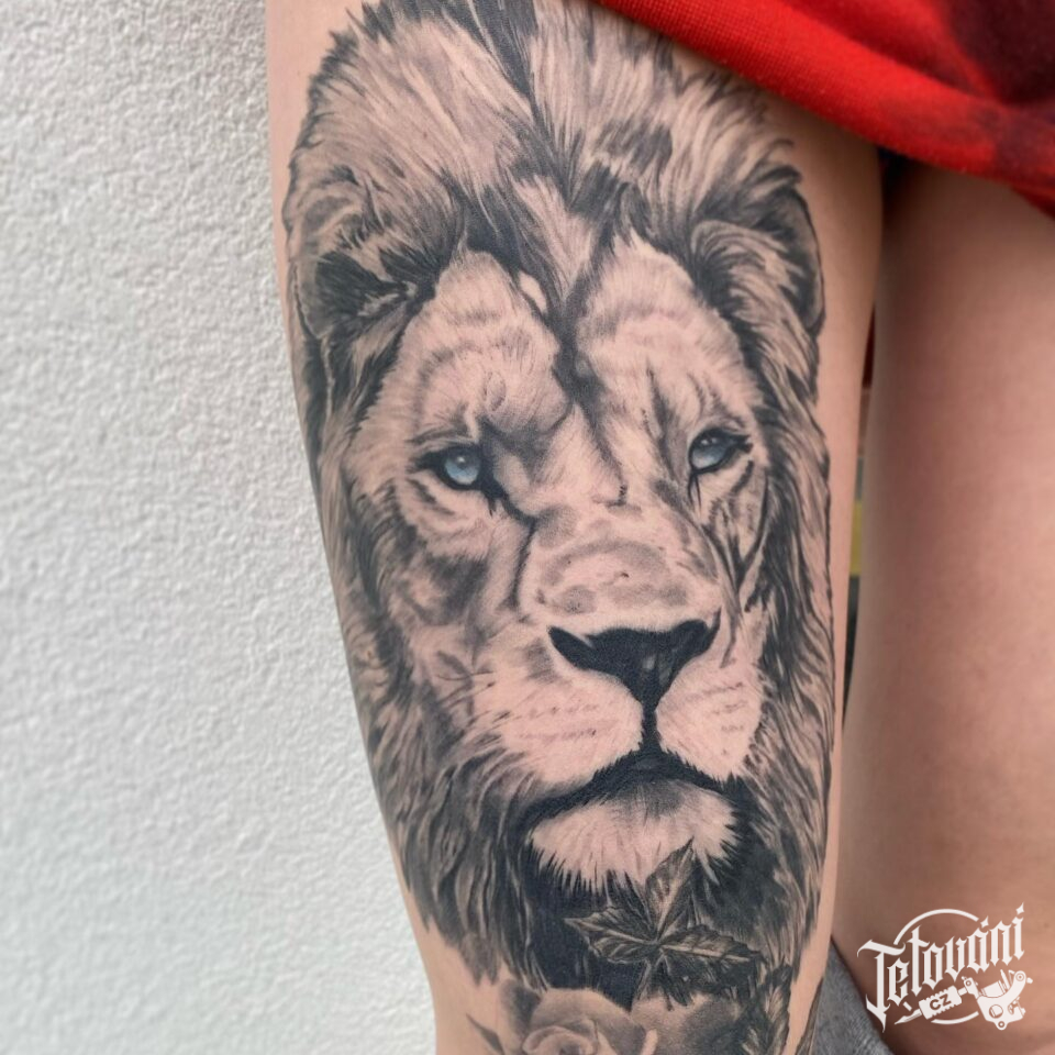 Tetování zvíře, lev na stehně