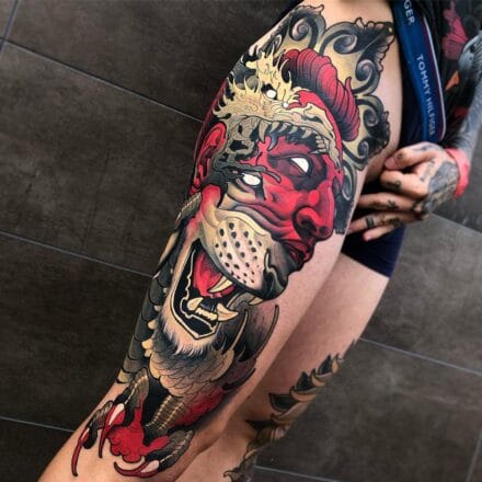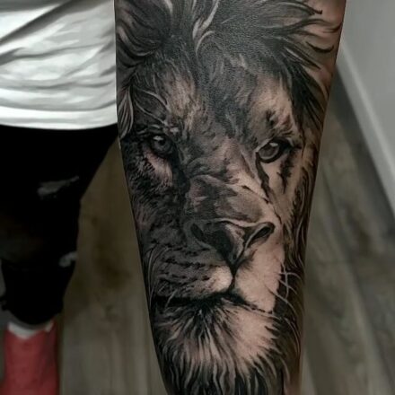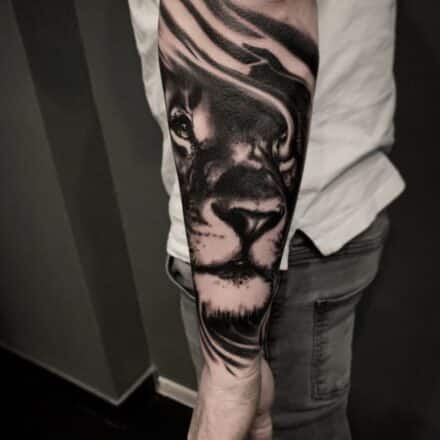 Tetování zvíře lev, portrét na lýtko