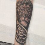 Tetování zvíře, lev s hodinami na předloktí