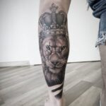 Tetování zvíře, lev s korunou na lýtku