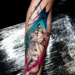 Tetování zvíře, lev, vesmír, planety na předloktí