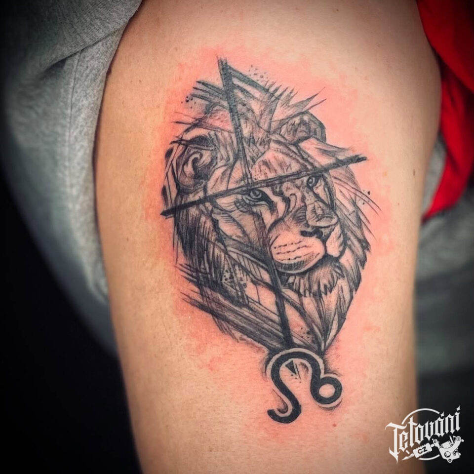 Tetování zvíře, lev znamení zvěrokruhu na boku stehna