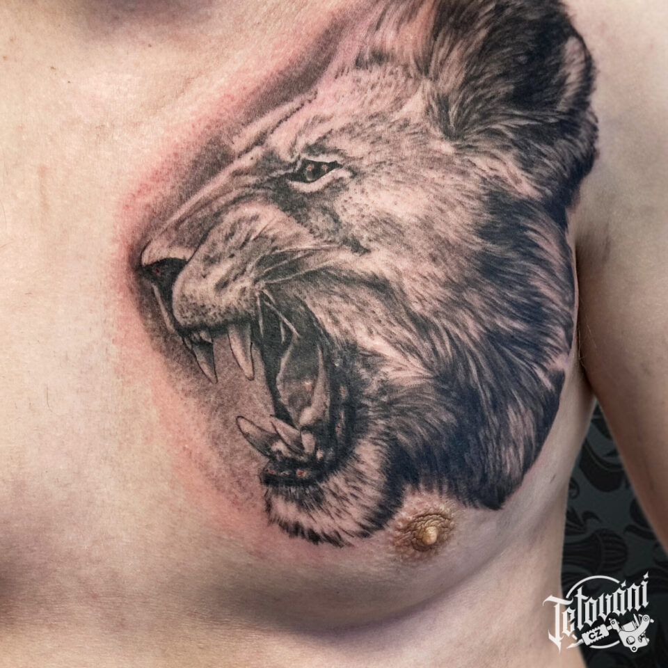 Tetování zvíře, lev znamení zvěrokruhu na hrudi