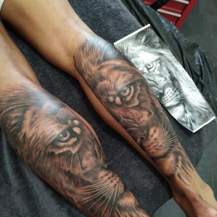 Tetování zvíře, lev znamení zvěrokruhu na předloktí