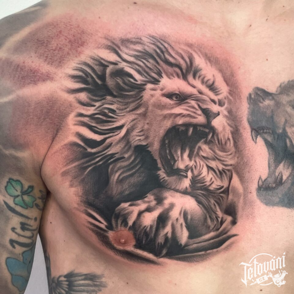 Tetování zvíře lev, znamení zvěrokruhu na prso