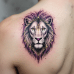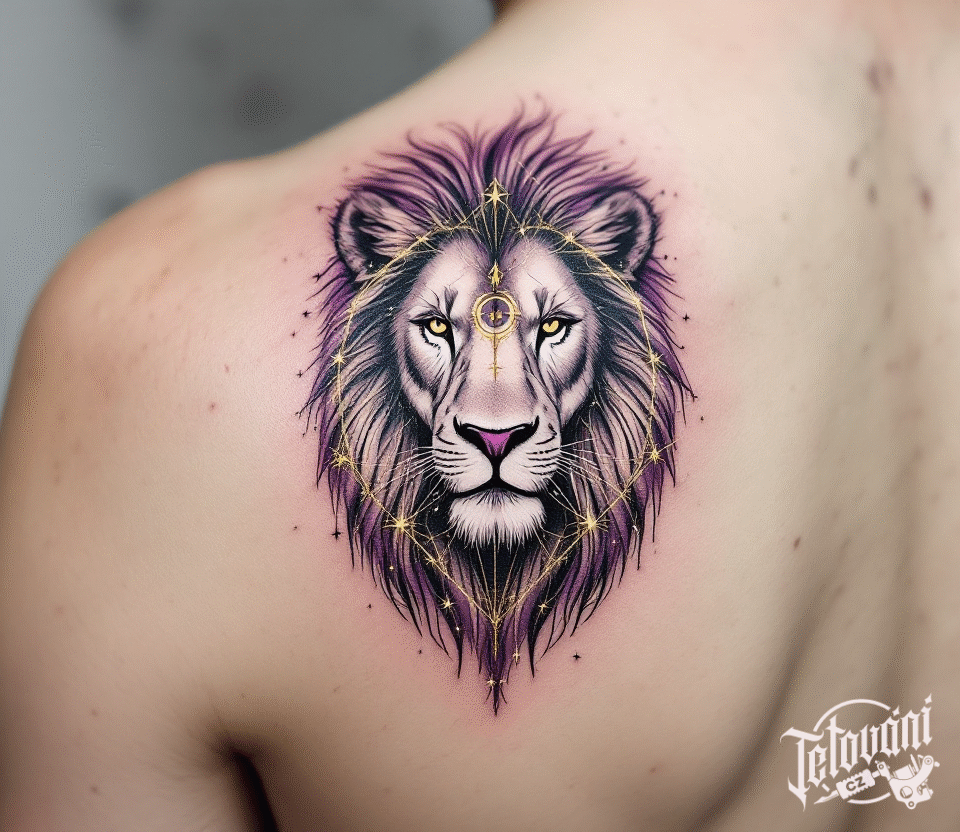 Tetování zvíře lev znamení zvěrokruhu, souhvězdí lva na lopatce