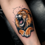 Tetování zvíře, lev znamení zvěrokruhu, souhvězdí lva na předloktí