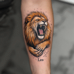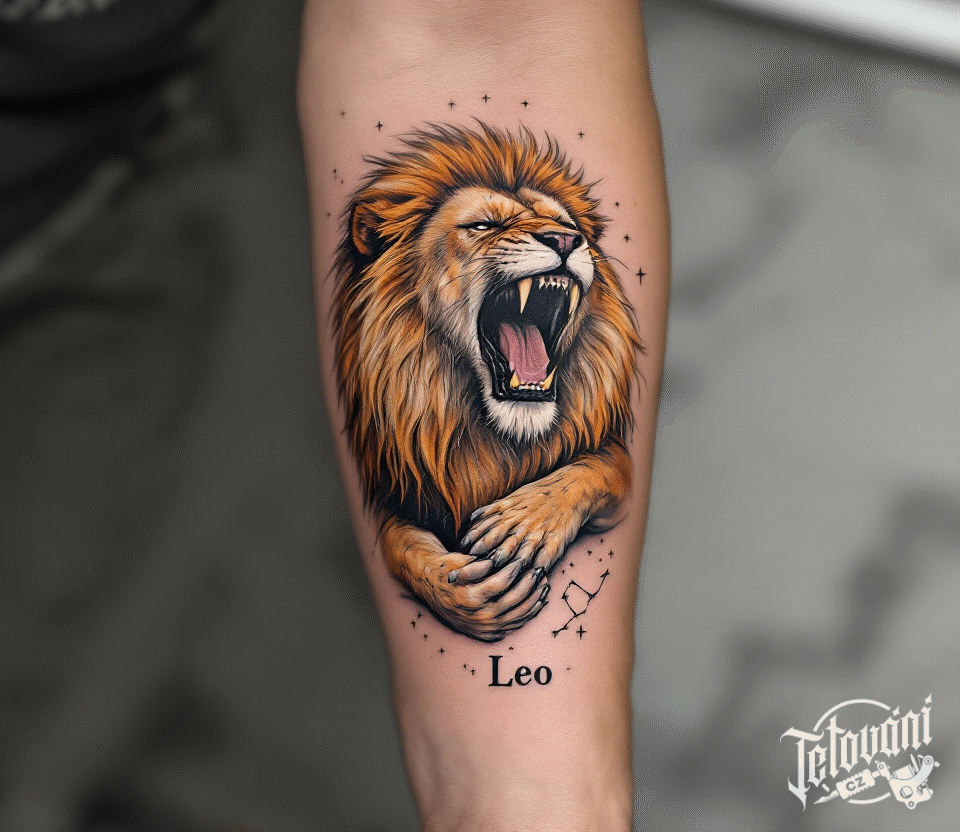 Tetování zvíře lev znamení zvěrokruhu, souhvězdí lva na předloktí
